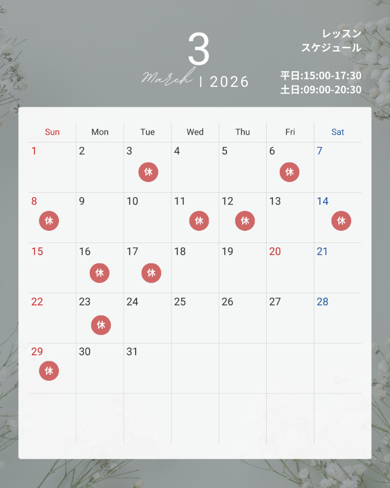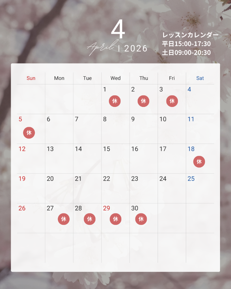 | 体験レッスン | 2,000円 1回30分(レッスン20分+説明10分) |